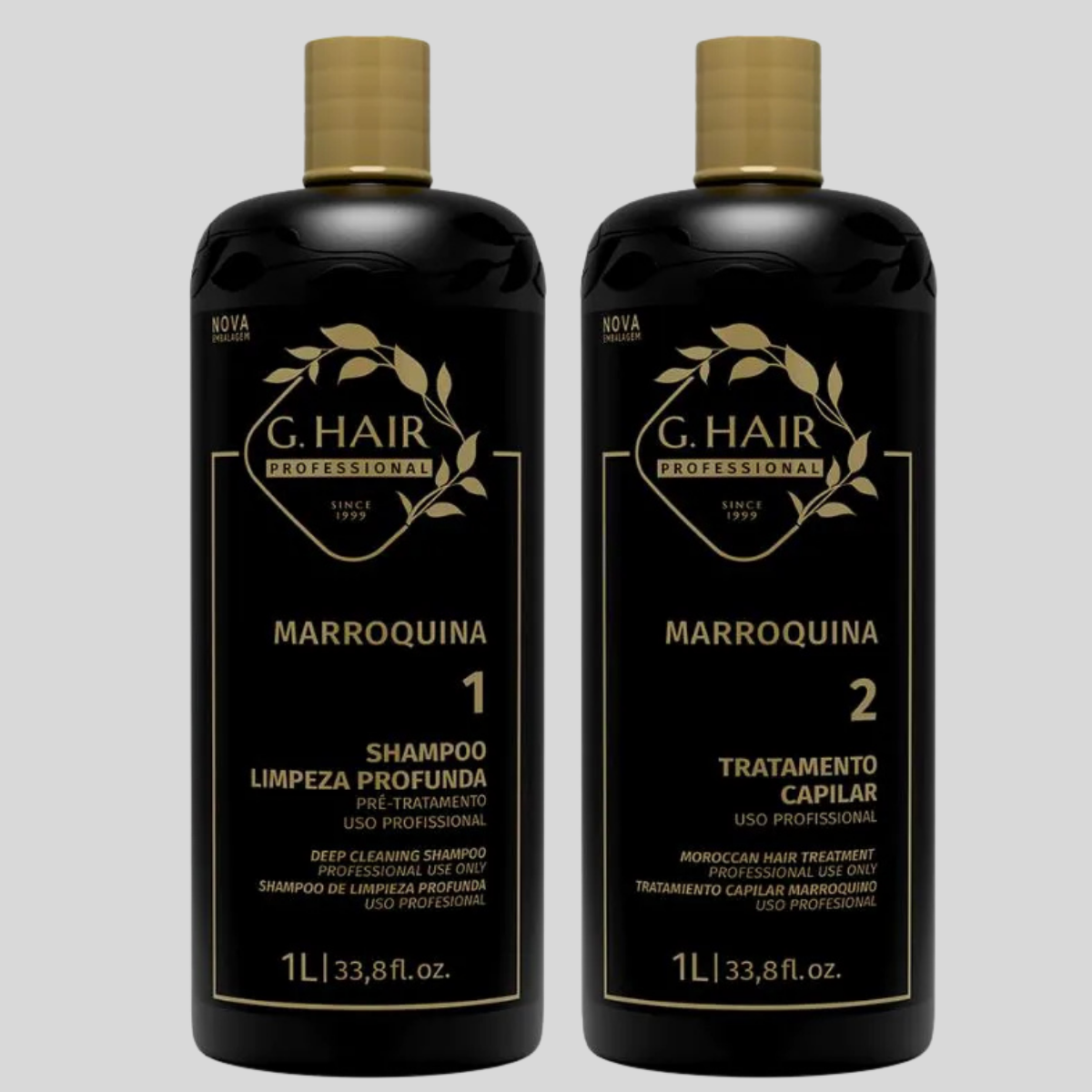Descubre el poder de la Keratina Marroquina G.Hair Professional, un tratamiento profesional diseñado para transformar tu cabello en solo dos pasos: